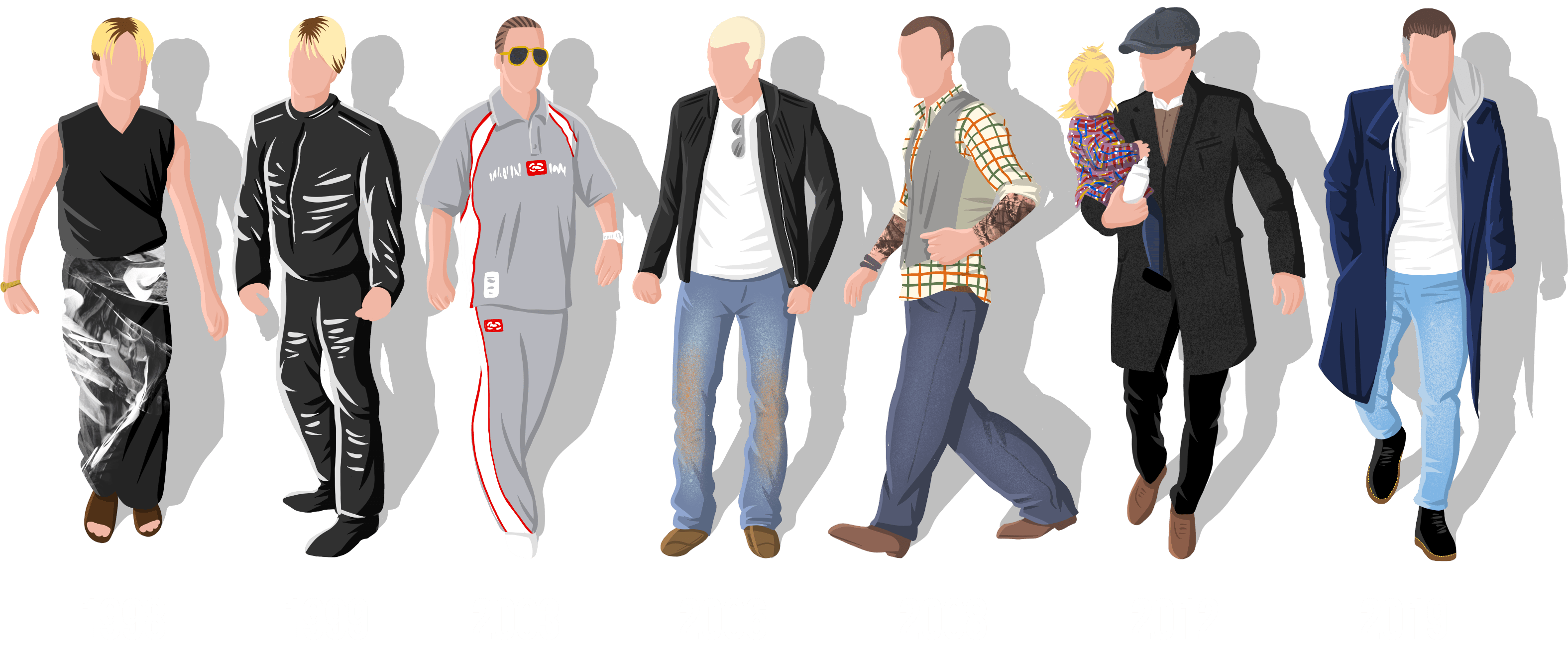 Click on the individual figures below to get the low down on each look and discover how these outfits influenced trends at the time.