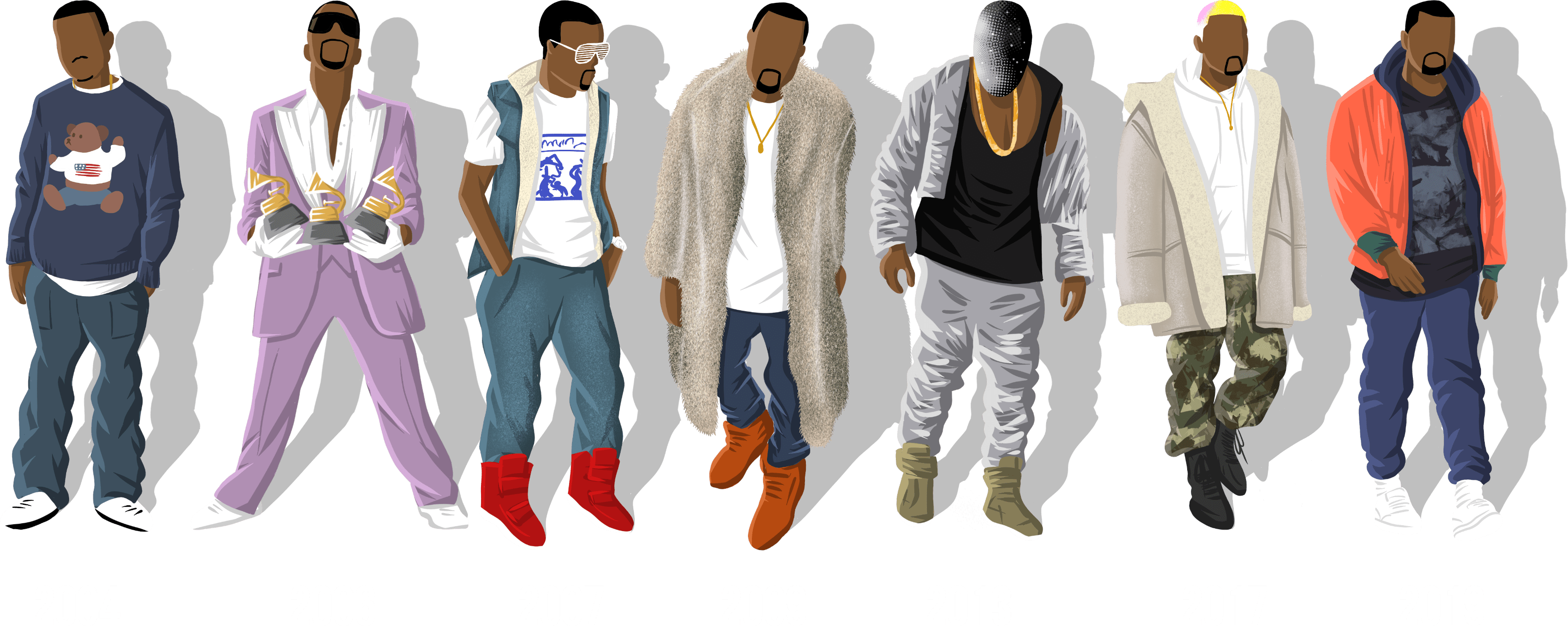 2019 - After years of outrageous outfits, Kanye has finally hit the style jackpot. With his Yeezy venture now worth over £1 Billion, Kanye is the king of contemporary fashion, with music being a key influence on his designs.